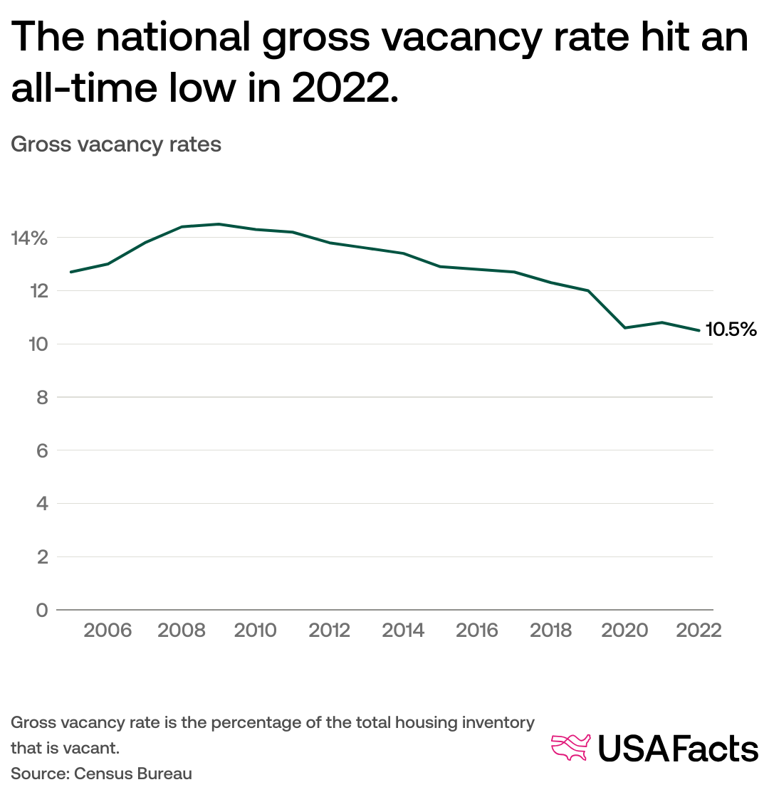 Additionally, the gross national vacancy rate was 10.5% in 2022 — the lowest rate recorded since it was first measured by the Census Bureau in 2005.